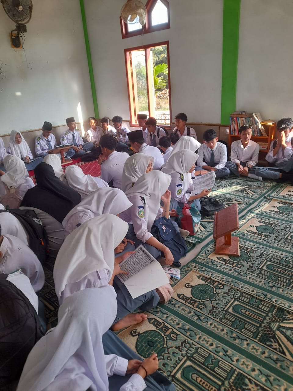Muaro Jambi - MAN 2 Muaro Jambi Senin 10/3 bertempat di Musholla MAN 2 Muaro Jambi program tadarusan dalam bulan suci ramadhan berlangsung dengan penuh semangat dan dan di ikuti oleh siswa-siswi dengan antusias.