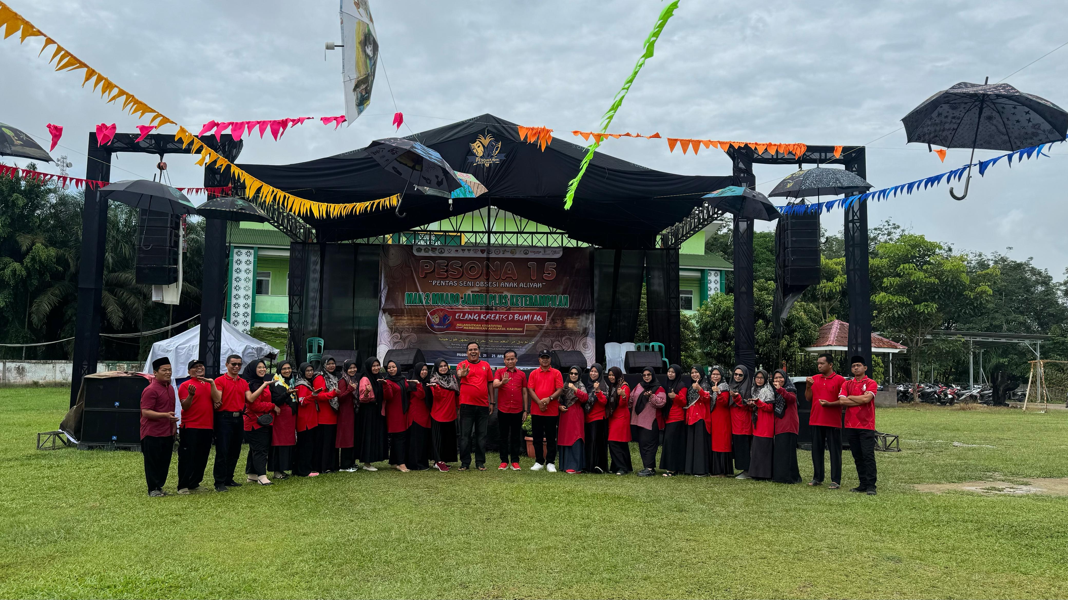 Muaro Jambi - MAN 2 Muaro Jambi 21 April 2025 bertempat di arena utama pergelaran Pentas Seni Obsesi Anak Aliyah atau yang di singkat Pesona yang ke 15 Tahun MAN 2 Muaro Jambi Resmi Di Buka oleh Kepala MAN 2 Muaro Jambi Bapak Osnedi, S.Si. Adapun Tema Tahun ini yakni "Melangitkan Kreatifitas Dengan Membumikan Akhlakul Kharimah"