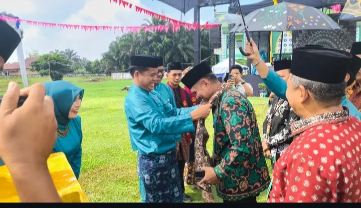 Turut menyambut bapak kepala MAN 2 Muaro Jambi di dampingi oleh ibu wakil kelas bidang kesiswaan dan bujang gadis MAN 2 Muaro Jambi