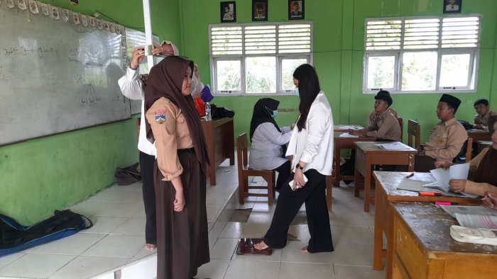 Skrining kesehatan yang dilakukan meliputi pengukuran tinggi badan, berat badan, serta pemeriksaan kadar hemoglobin (Hb) khusus untuk siswi. Pemeriksaan ini bertujuan untuk memantau kondisi kesehatan para peserta didik secara menyeluruh dan mendeteksi secara dini potensi masalah kesehatan yang mungkin dialami siswa.