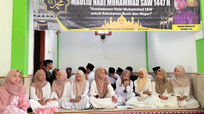 Muaro Jambi – Acara peringatan Maulid Nabi Muhammad SAW 1447 H di MAN 2 Muaro Jambi berlangsung meriah dengan penampilan grup marawis yang memukau. Grup marawis ini tampil di hadapan para siswa, guru, dan tamu undangan, menambah semarak suasana peringatan hari besar Islam tersebut.