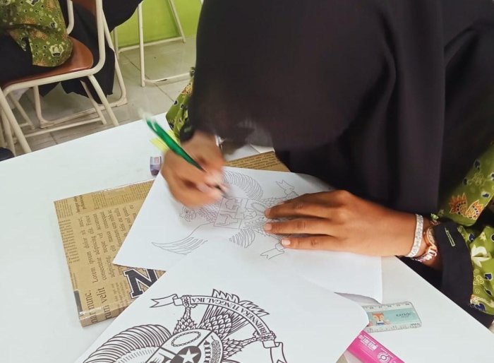 Poster yang dibuat siswa umumnya memuat gambar lambang Garuda Pancasila serta penjelasan singkat mengenai makna setiap sila. Selain itu, siswa dapat menambahkan pesan-pesan yang menonjolkan persatuan, toleransi, dan semangat kebangsaan. Kegiatan ini bertujuan menanamkan rasa cinta tanah air dan memperkuat karakter kebangsaan sejak dini. Dalam pelajaran PKN bersama bapak Kasiman, S.Pd.I, siswa diajak memahami lebih dalam makna simbol negara melalui aktivitas ini.