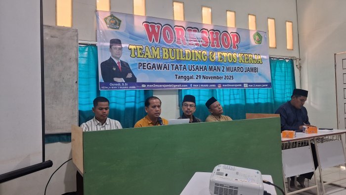 MAN 2 Muaro Jambi menyelenggarakan workshop bertema penguatan team building dan etos kerja pada 29 November 2025. Acara ini berlangsung di ruang IT sekolah dan diikuti oleh seluruh staf tata usaha MAN 2 Muaro Jambi.