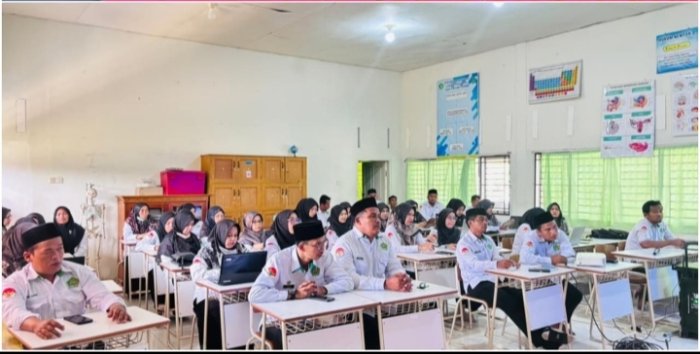 Kepala MAN 2 Muaro Jambi, Andries Afni, S.Pd.I, memimpin rapat evaluasi kinerja bulanan bersama seluruh tenaga pendidik dan kependidikan pada Senin, 9 Februari 2026. Kegiatan ini dilaksanakan di laboratorium IPA sekolah sebagai bagian dari upaya peningkatan mutu pendidikan di lingkungan madrasah.