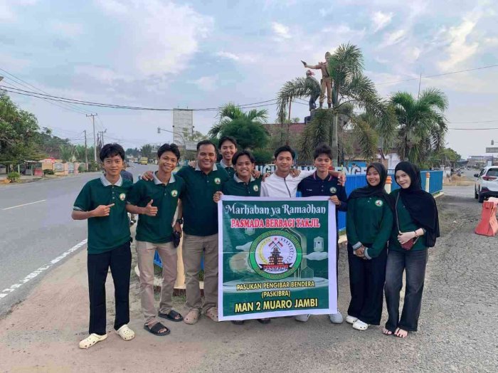 Pada Rabu, 11 Maret 2026, Pasukan Pengibar Bendera (Paskibra) MAN 2 Muaro Jambi, yang dikenal dengan nama Pasmada, melaksanakan kegiatan sosial berupa pembagian takjil kepada masyarakat di sekitar Bundaran Tugu Juang, Sengeti, Kabupaten Muaro Jambi. Kegiatan ini merupakan salah satu bentuk kepedulian sosial yang rutin dilakukan oleh Paskibra MAN 2 Muaro Jambi, khususnya selama bulan Ramadan.